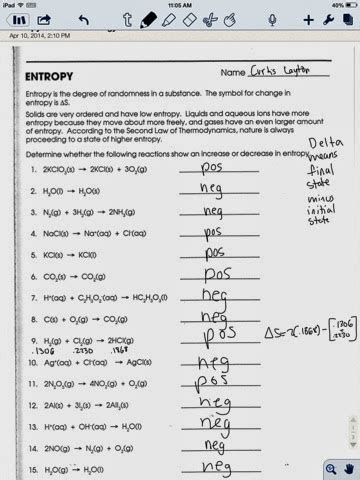 Some Of The Worksheets For This Concept Are Work Entropy S Dispersed Energy Levels Increasing, , Entropy Work, Ch302 Work 13C.